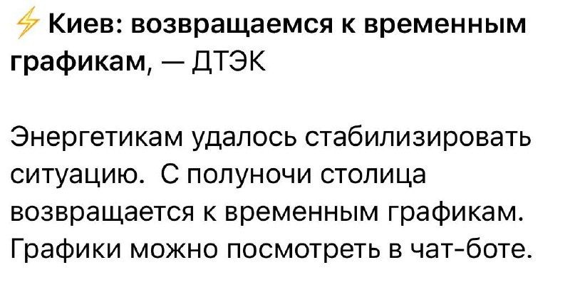 » Киев сообщает, что энергетикам удалось стабилизировать ситуацию. И с полуночи столица возвращается не к аварийным, а к плановым отключениям. Но, думаю, переговоры, которые должны были состояться сегодня, украинская сторона перенесла намеренно, чтобы вынудить нас продлить мораторий на удары по энергетике. Для благоприятного фона, так сказать. Хотя для этого самого фона стоило бы прекратить лупить из Хаймарса по Белгороду, к примеру. Коц в VK | MAX | Дзен @КОЦ