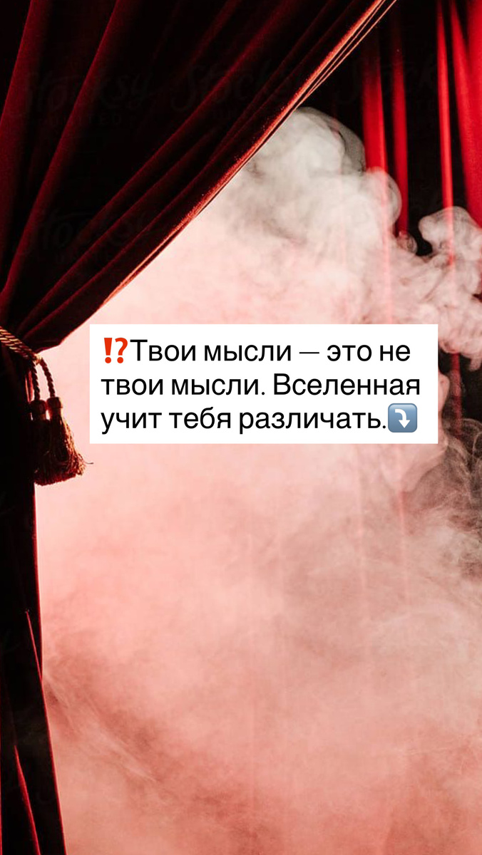 Мысли же, которые несут страх, тревогу, сомнение, ощущение угрозы или внутреннего сжатия, не принадлежат вам. Это деструктивные импульсы информационного поля. Они не ведут к росту, не усиливают, а забирают энергию. Вселенная никогда не разговаривает с человеком через страх — её язык всегда про ясность и расширение.