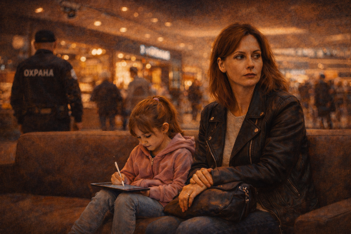 Место она выбрала осознанно: люди, шум, камеры, охрана, постоянное движение. Пространство, где сложно разыгрывать сцены и невозможно остаться наедине. Для нее — спокойно. Для него — неудобно.