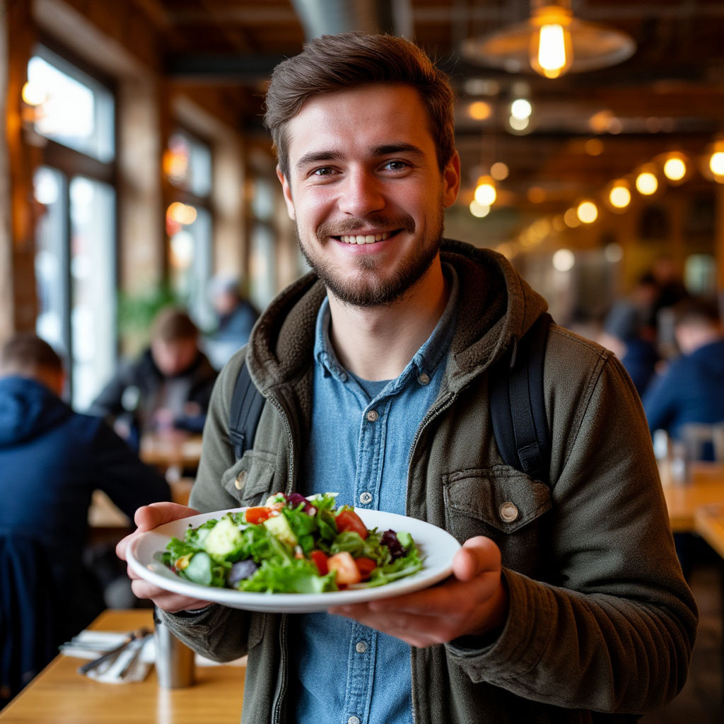 Всё начинается невинно: группа подкатывает к столовой. Идеальный участник, эталон, на котором тестируют соцопросы – действует чётко, как часы: суп → салат → котлета с гарниром → компот → касса. "Что-то необычное? Берём. Что-то необычное, но слишком дорогое? Не берём". Решения принимаются на лету и однозначно. Его путь по линии – это легкая прогулка. Он не думает, он берёт.