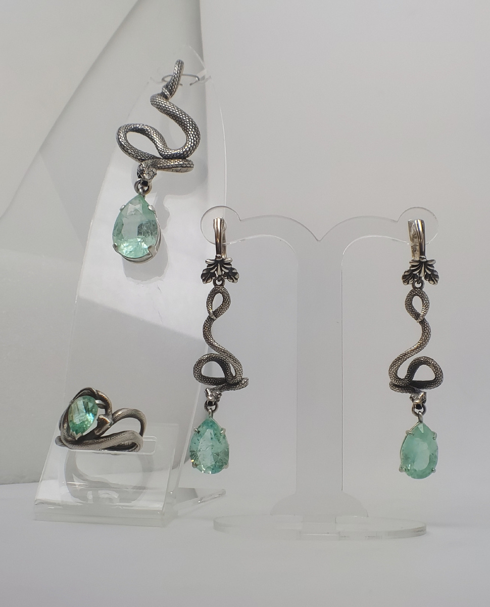 А у нас готов гарнитур "Змейки"!🔥 В гарнитур входят серьги, кольцо и кулон. Сначала мы хотели показать вам их всех одновременно. Однако во время съемки стало ясно, что не получится показать всю красоту и все нюансы исполнения в одной публикации, ограниченной 10-ю фотографиями.