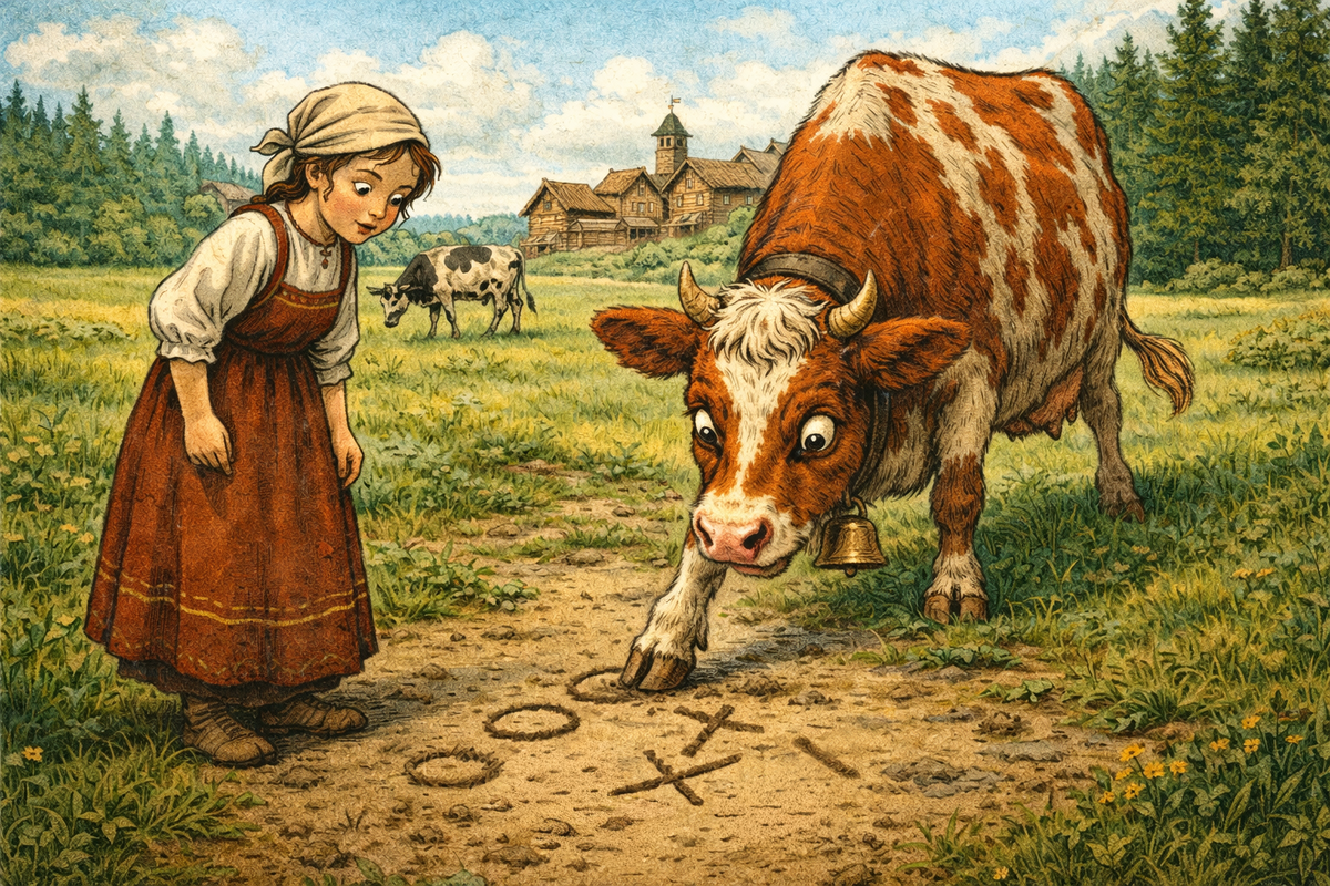 Следующим этапом стали «письмена». Он начал выводить копытом на утрамбованной земле простые знаки: палочки (сколько раз сегодня кричала хозяйка), круги (яблоки на той самой яблоне), крестики (сёстры). Маринка смотрела, широко раскрыв глаза, и постепенно начинала понимать.