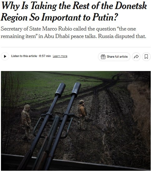 ‼️Донбасс станет для России плацдармом для нового наступления при срыве Зеленским мирных договорённостей, — NYT