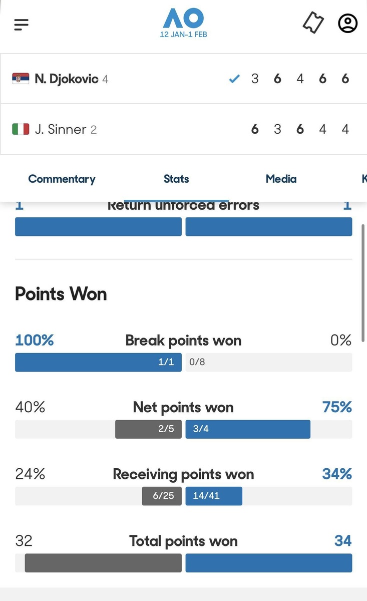 Янник Синнер выиграл больше очков в последнем сете, но проиграл матч 🎾
