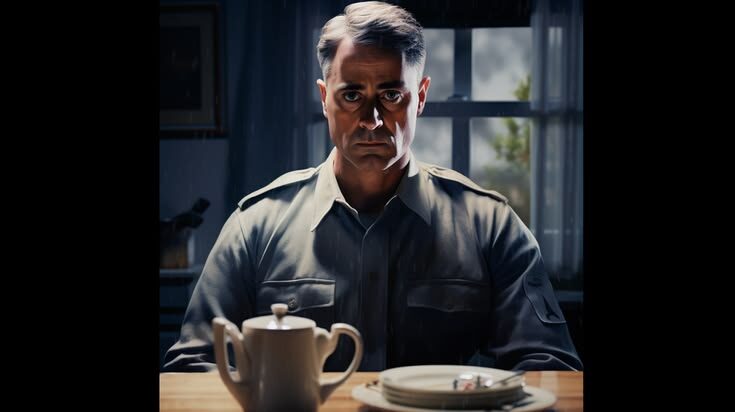 Полковник уселся за стол, и с заметным аппетитом взял хлебную корочку, а также достал из банки маринованный огурец.