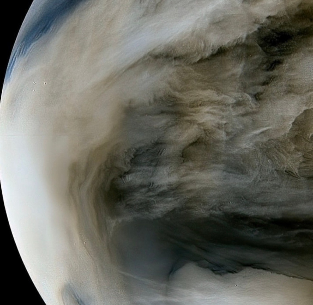 ". Поверхность второй от Солнца планеты скрыта под плотнейшим слоем облаков из серной кислоты в видимом свете невозможно разглядеть ничего, кроме однородной желтоватой глади. Но зонд "Акацуки" использовал инфракрасные камеры, которые позволили "заглянуть" под верхний облачный слой и изучить динамику атмосферы на ночной стороне. Темные участки на снимке облачные массы, светлые более плотные и холодные зоны, где тепло от раскаленной поверхности (около 460°С) пробивается через нижние слои атмосферы и подсвечивает облака изнутри. Инфракрасный диапазон позволяет видеть структуры на высотах 35-50 километров. Терра инкогнита | Неизвестная земля