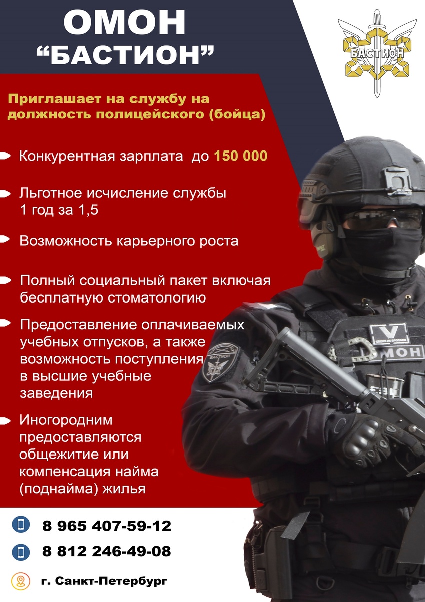 ПРИЁМ НА СЛУЖБУ: ОМОН "Бастион" ГУ Росгвардии по г.Санкт-Петербургу и Ленинградской области