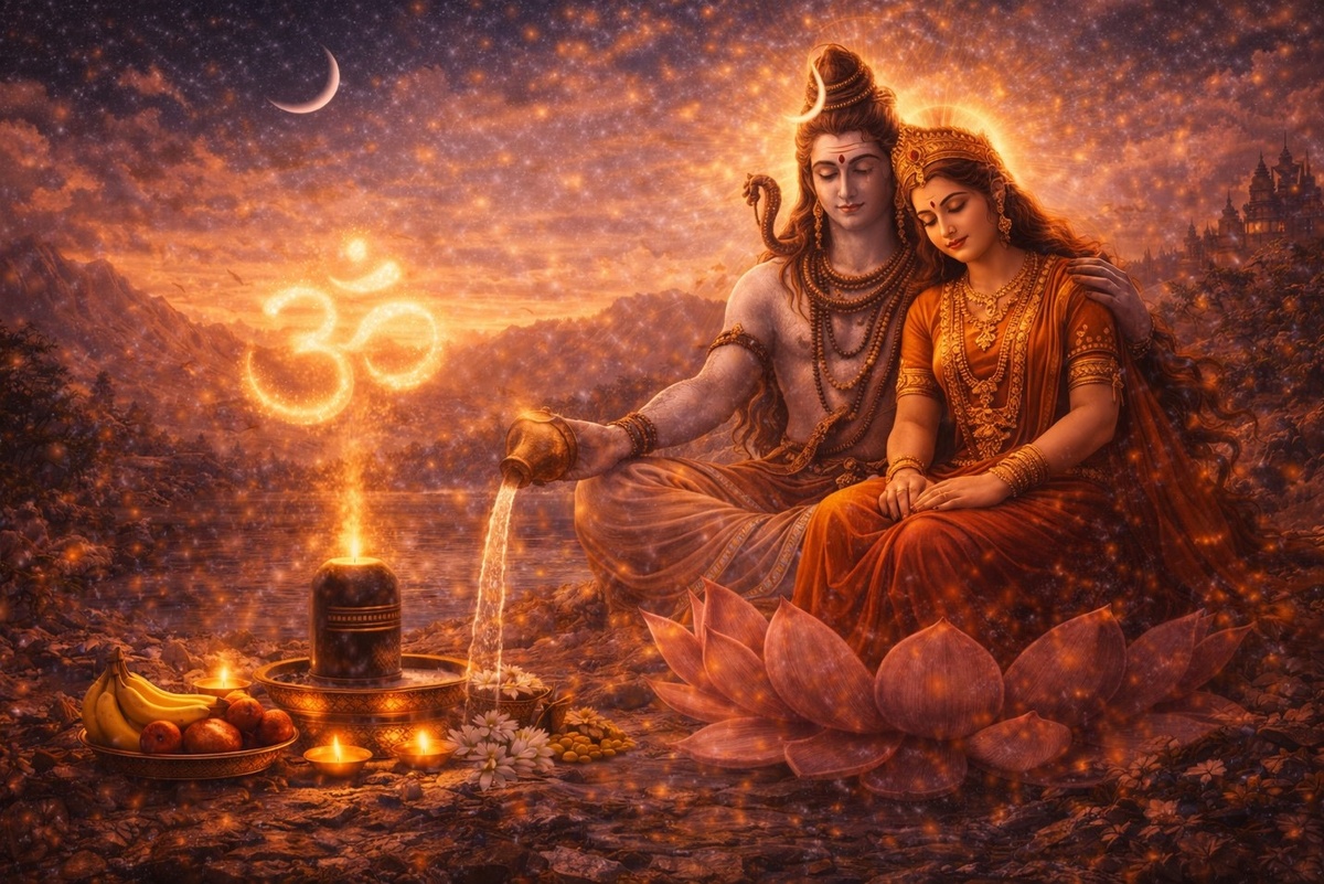 В этот час в традиции обращаются к Шиве (Shiva - принцип чистого сознания) и Парвати (Parvati - мягкая сила, поддерживающая жизнь), потому что их союз напоминает нам о главном балансе: действие нуждается в тишине, а тишина становится опорой для нового действия.