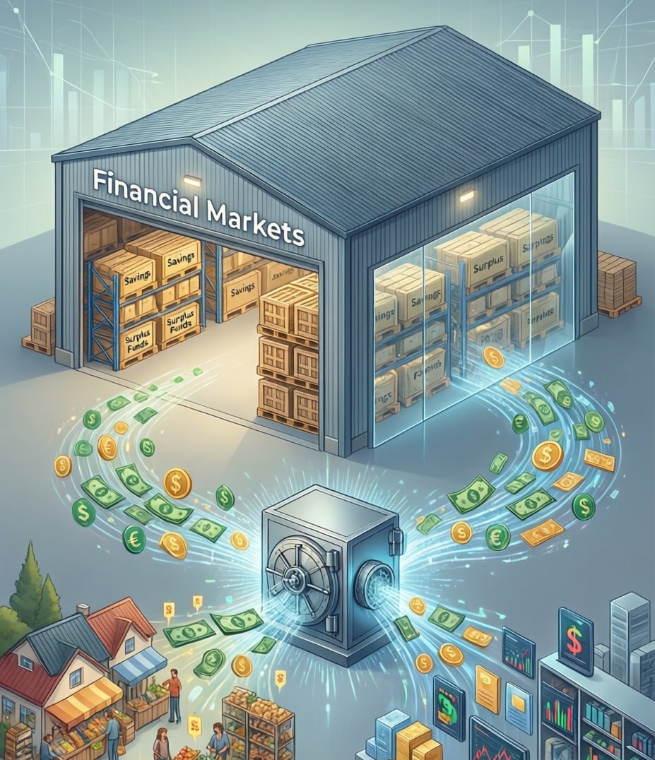 ". Суть в чем? Деньги изначально появляются как обязательство банков перед центральным банком с целью передачи этих денег в долг государству, компаниям и населению. Они используют их, чтобы покупать товары и услуги (в широком смысле). Для людей это и покупка продуктов питания и покупка квартир, а для компаний и государства - это аренда, оплата труда, покупка сырья и оборудования и т.д. Когда денег в экономике примерно столько же сколько и потребляется товаров и услуг, тогда фондовый рынок и не нужен, так как нет денег, чтобы туда направить. Но вот если денег в экономику вливается больше, чем люди готовы потреблять, то появляются "лишние (свободные) деньги" (в виде накоплений), которые люди, компании и государство могут либо направить на свое потребление, тем самым стимулируя рост цен, либо направить на финансовые рынки. И получается, что фондовый рынок - это большой склад, который хранит ваши сбережения и замедляет рост цен в магазинах.