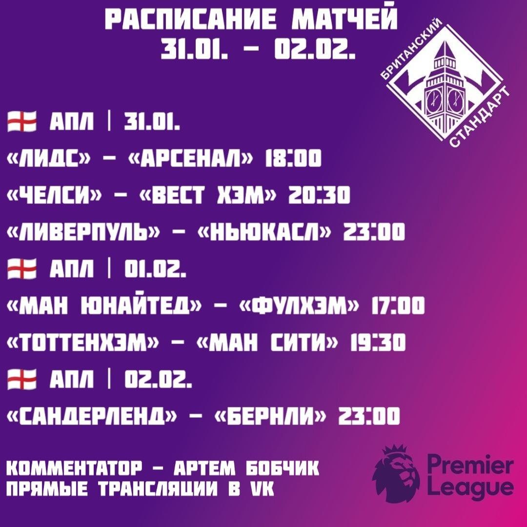 ⚽️⚽️⚽️⚽️⚽️⚽️⚽️⚽️⚽️ 🗓 Расписание трансляций 🌐 МЫ В VK 🎁 НАШ КОНКУРС #Football #EPL