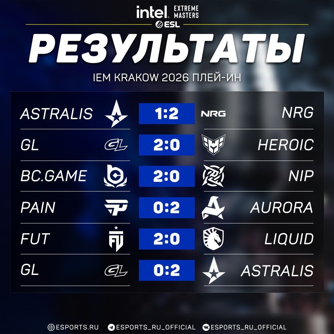 🇺🇸 NRG, 🇷🇺 Aurora, 🇪🇺 BCG, 🇩🇰 Astralis и 🇪🇺 FUT проходят в основную стадию турнира.