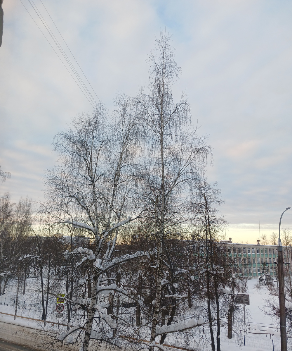 Снимала из кухонного окна. Напротив школа, где я проработала почти 30 лет. Сначала ходила по дорожке напрямую, меньше пяти минут, потом провели газовую трубу и пришлось ходить немного дальше )).