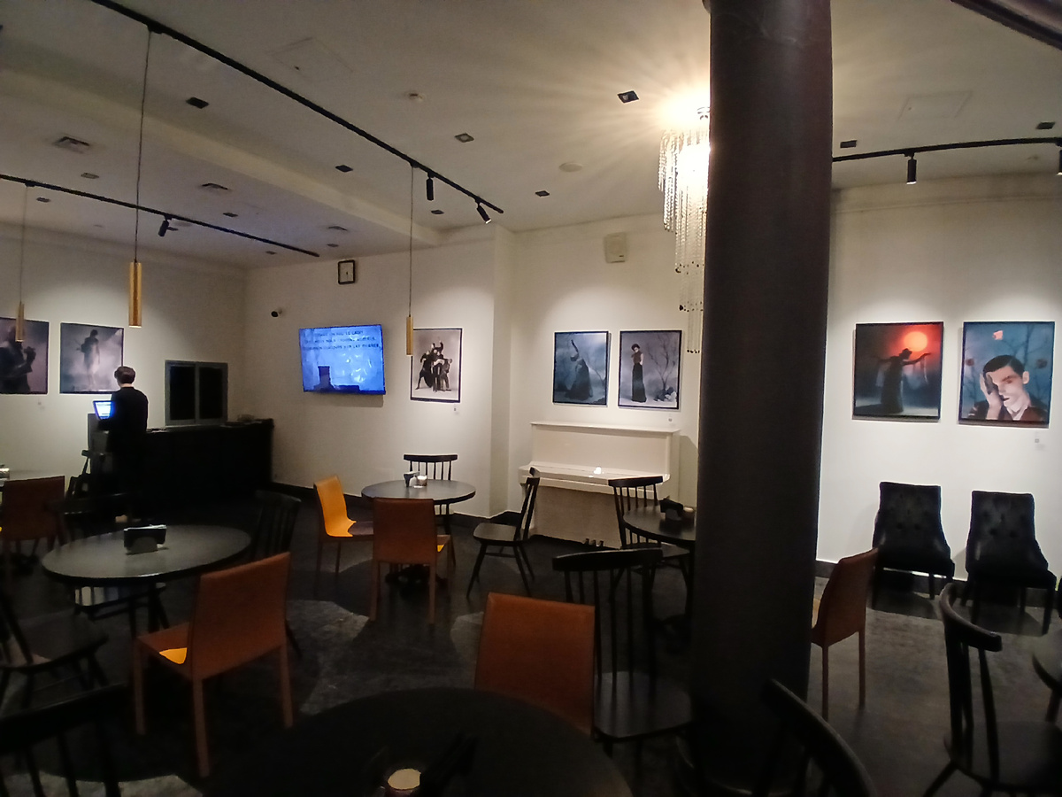 Фойе уютное, посетители кафе сидят за столиками, а если Вам в кафе не надо, вдоль стен стоят кресла и диваны, на которых можно дождаться начала спектакля.