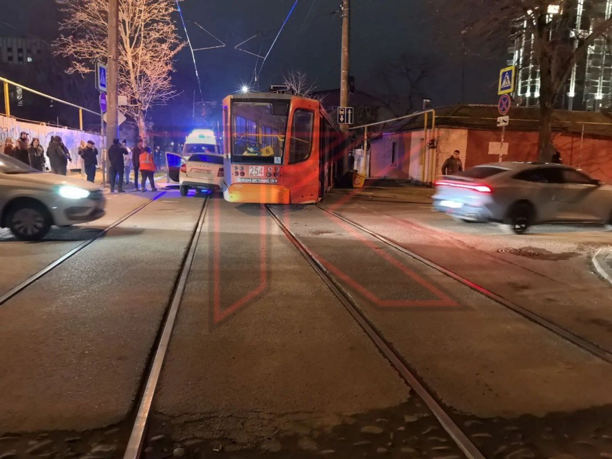 Трамвай сошел с рельсов в результате ДТП на пересечении Коммунаров и Длинной.