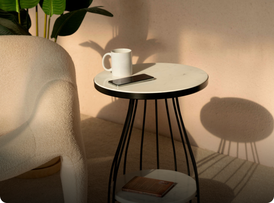 Хороший читальный уголок — это не конкретный мебельный набор, а атмосфера. В нём должно быть удобно телу, спокойно глазам и легко голове. Ниже — 10 вещей, которые помогают настроиться на чтение и проводить это время с удовольствием. Читать удобно при тёплом локальном освещении, когда свет не заливает всю комнату. А торшер умеет создать такой комфортный световой остров — книгу видно хорошо, а всё остальное мягко уходит в тень. Когда свет работает точечно, он не утомляет глаза и позволяет сосредоточиться на процессе. На фото: Торшер Rotor Floor Lamp, Woodled Кресло из тёплого шпона дуба, геометричное и уютное, с акцентной тканью выглядит в интерьере ярче других. Оно как иллюстрация стиля 60-х. В нём объединяются отсылки к скандинавскому дизайну, элементы эко-стиля и акцентные цвета интерьера. В таком ярко и удобно проводить хоть весь день. На фото: Кресло 11 am, Enjoy Home Руки сами тянутся к книгам, когда красивые обложки всегда на виду. Открытая деревянная этажерка с полками ёлочкой не