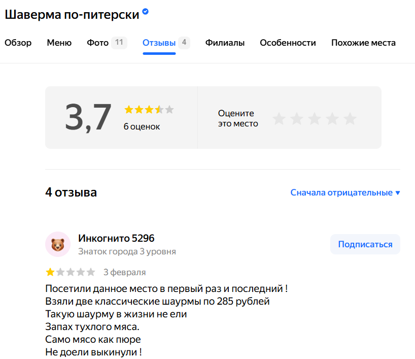 Ну правда, шава это уже не просто еда, это культ. И к этому культу есть желающие присоседится и подзаработать! И если в Питере плохие шавы просто не выживают - то в регионах спрос на что то "столичное" есть. Но увы - качество оставляет желать лучшего. Вопрос риторический - почему "питерская шаверма" за пределами Питера почти всегда провал? Чтобы разобраться - тестируем "шаверму по-питерски" в Самаре! Рейтинг и отзывы уже намекают: Но мы не ищем легких путей и идем внутрь! Забавно но интерьер чем то напоминает культовую шаву на Литейном: А вот неповторимый оригинал: Найди 9 отличий как говорится)) Но на этом сходства заканчиваются, вертела не видно и откуда берется мясо - непонятно. За то просьбы тут пишут прямо на стенах: Где вертел? не вижу: Сначала на тестируем классику - размерчик маловат, а на срезе видно что состав похож на классику: Но это только на вид, дальше начинается разочарование, курица как будто вообще похожа на ветчину, а соус напоминает сметану с мазиком, никакой ни ос