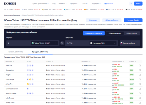Мониторинг криптообменников Ростова на Exnode