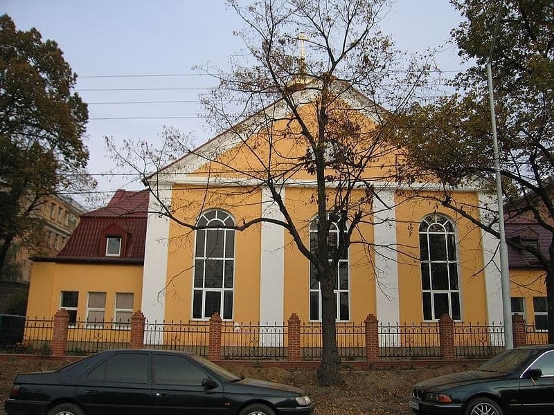 Архитектор - Фритц Блайер Здание было сооружено на том месте, которое освободилось после первых работ по сносу укреплённых сооружений, начавшихся с разрушением Штайндаммских ворот и продолженных в восточном направлении. В непосредственном соседстве в конце Гроссгёршенштрассе возникли главный ресторан Восточной ярмарки (постр. в 1921 г.) и, гранича с обратной стороны участка с Высшей реальной школой им. Гинденбурга, начатая строительством в 1914 г. Общинный дом стал, таким образом, первым домом, который возник в этом районе бывших вальных укреплений. Своим большим фронтоном, выходящим на улицу, и куполом маленькой башенки в стиле, сходным с барокко, здание хотя и можно приближённо отнести к церковным сооружениям в стиле барокко, однако, формы периметра здания и крыши напоминают также о прежде бывших в моде зданий в поместном стиле. Раньше внутри располагались: два зала для конфирмирующихся и бюро священника, а также квартиры священника, дьякона, церковного служки, церковного ренданта