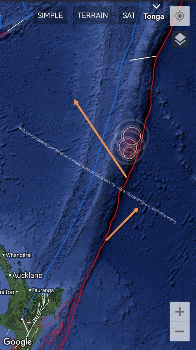 Вероятность землетрясения М6+ в течение 9 дней имеется на плите Кермадек