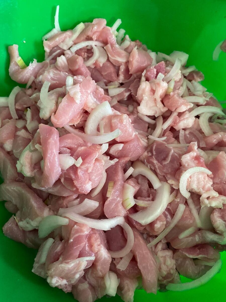 - Смешайте мясо с луком, слегка посолите и поперчите.
