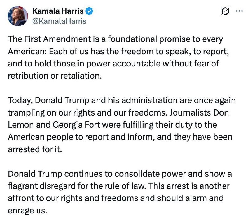 Kamala Harris claims Don Lemon arrest is an ‘AFFRONT to our rights and FREEDOMS and should ALARM and ENRAGE US’