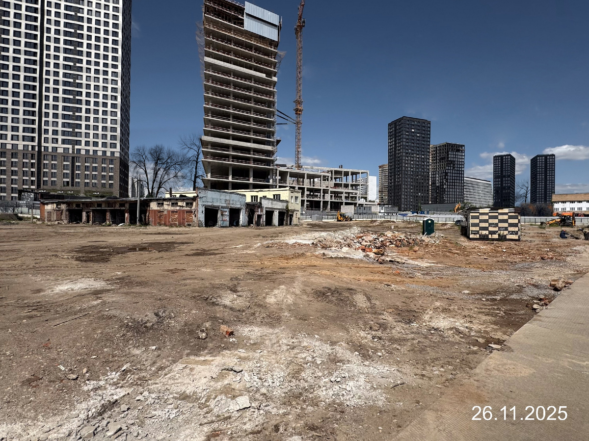 Сегодня абсолютно спонтанная тема, вызванная моим любопытством и дотошностью. Если вкратце, то возле метро "Воронцовская" строят новый ЖК. Ну строят и строят, что в этом такого - спросите вы. Ничего необычного, согласен. Я в принципе каждый день хожу мимо к метро и обратно, а также делаю периодически фотоотчеты для форума, а также слежу за официальными отчетами, которые выкладываются на сайтах по новостройкам (например, Новострой-М или Наш.Дом.рф). Проще говоря - слежу за ходом строительства. И вот мне попалась отчетная фотография, которую датировали декабрем 2025 года. Само фото подписано как 26.11.2025. Это важный момент. На первый взгляд вроде ничего необычного. Но вот тут и начинаются странности. С одной стороны, антураж на фото, а это голые деревья, говорит о том, что это либо ранняя весна (март-апрель), либо - поздняя осень (ноябрь-декабрь). С другой стороны, у меня есть подробные фотографии за каждый месяц и соседнего строящегося офисного здания - в апреле там было только 5 эта
