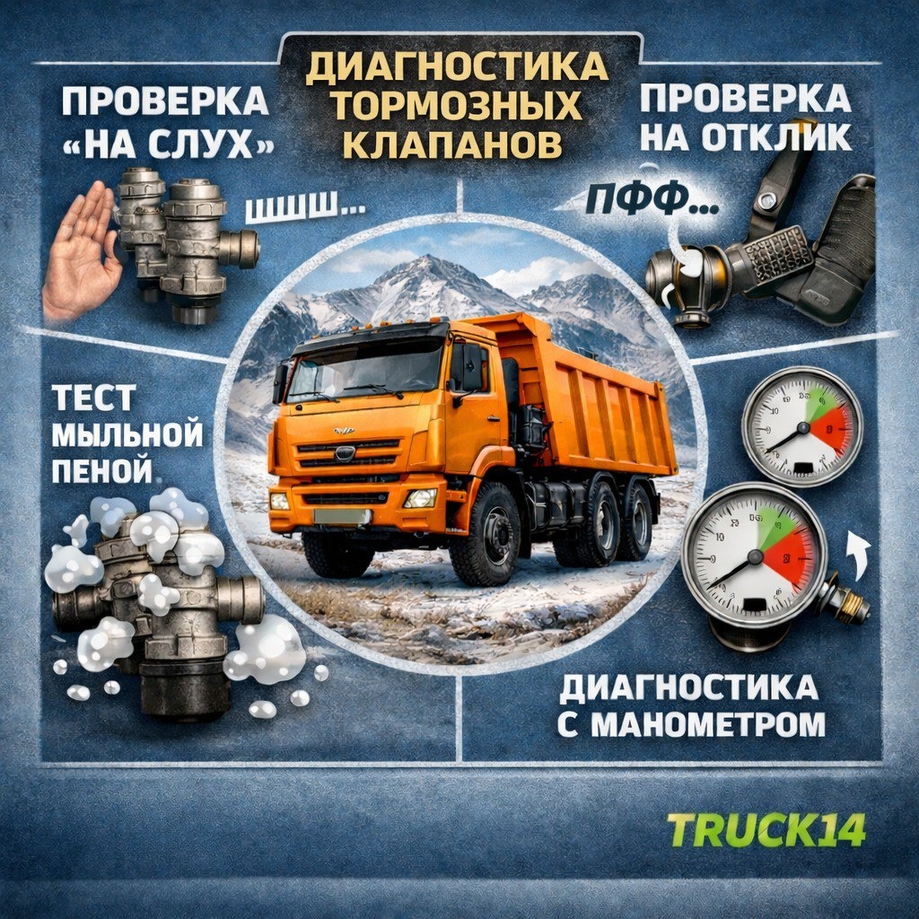 Если на КАМАЗе, МАЗе или «китайце» вроде Shacman тормоза стали «ватными», либо машина растормаживается с задержкой — скорее всего, клапан начал хандрить. Диагностировать его можно самому, прямо на стоянке, пока не замерзли руки: ✅ Проверка «на слух» Накачайте систему до рабочего давления и заглушите мотор. Пройдитесь вокруг машины. Если слышите характерное шипение в районе главного тормозного или защитных клапанов — это прямая утечка воздуха. Клапан не держит давление из-за износа манжет или попавшей внутрь грязи. ✅ Проверка на отклик Нажмите на педаль тормоза и резко отпустите. Если воздух выходит из сброса лениво, с задержкой — значит, внутри скопился конденсат, который превратился в лед или эмульсию. На FAW и Dongfeng это частое явление, если вовремя не менять патрон осушителя. ✅ Тест мыльной пеной Старый, но безотказный метод: нанесите мыльный раствор на выходные отверстия (сброс) клапана в расторможенном состоянии. Пошли пузыри? Клапан «травит» через уплотнения. Эксплуатироват