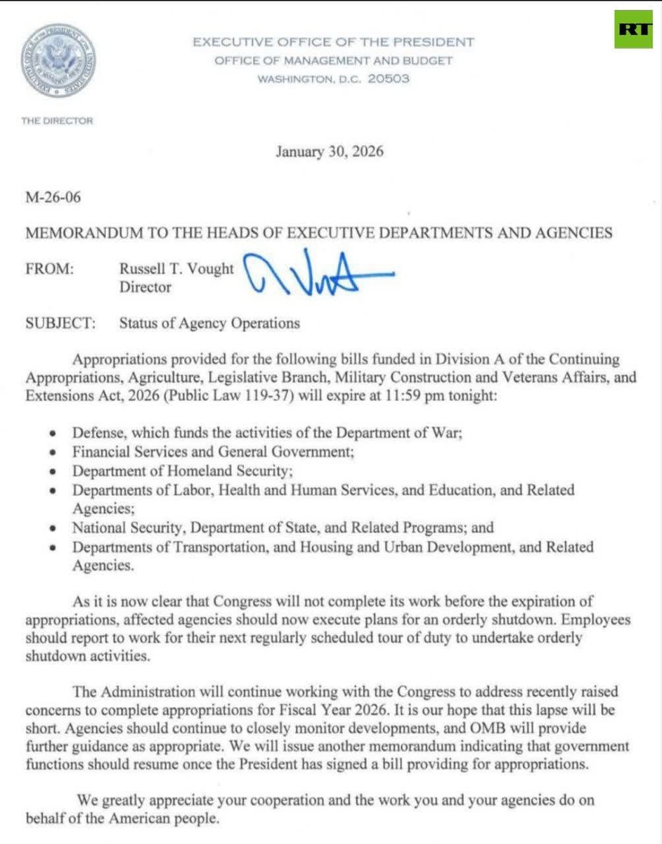 Partial govt shutdown CONFIRMED at midnight 30 Jan — House in recess until Monday