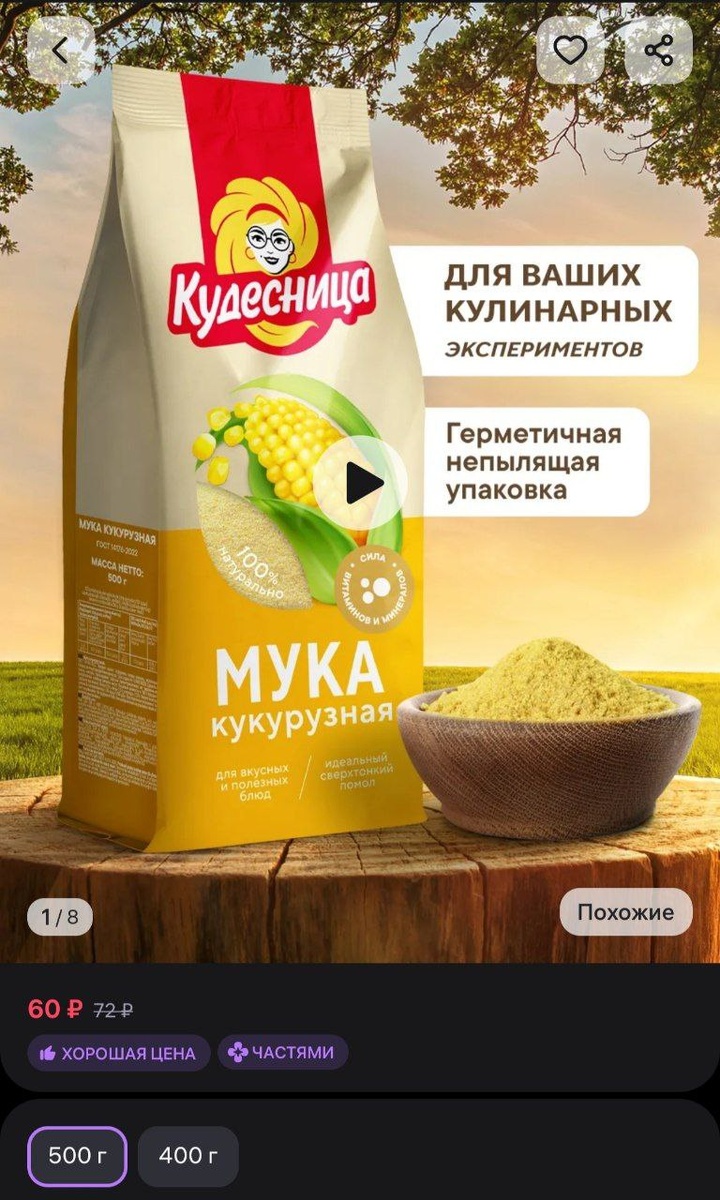 Мука кукурузная, 500 гр. Кудесница за 60₽