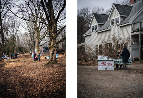Сахароварни (так называют места, где выпаривают сок) были особенно заняты в последние недели, потому что сезон добычи кленового сока очень короткий. Обычно он длится 4–6 недель — с конца февраля до начала марта. По сути, это конец зимы и начало весны. Всё дело в том, что деревья начинают вырабатывать сок только тогда, когда ночи остаются морозными, а дни становятся мягкими (около 40°F / 4°C). В этот момент сок начинает подниматься от корней к ветвям — это важнейшее питание, необходимое дереву, чтобы начать развивать листья и «проснуться» после долгой зимы. Именно поэтому сок никогда не собирают с деревьев диаметром менее 10 дюймов (25 см): забирая у молодого дерева столь важные питательные вещества, можно нанести ему вред и замедлить развитие.