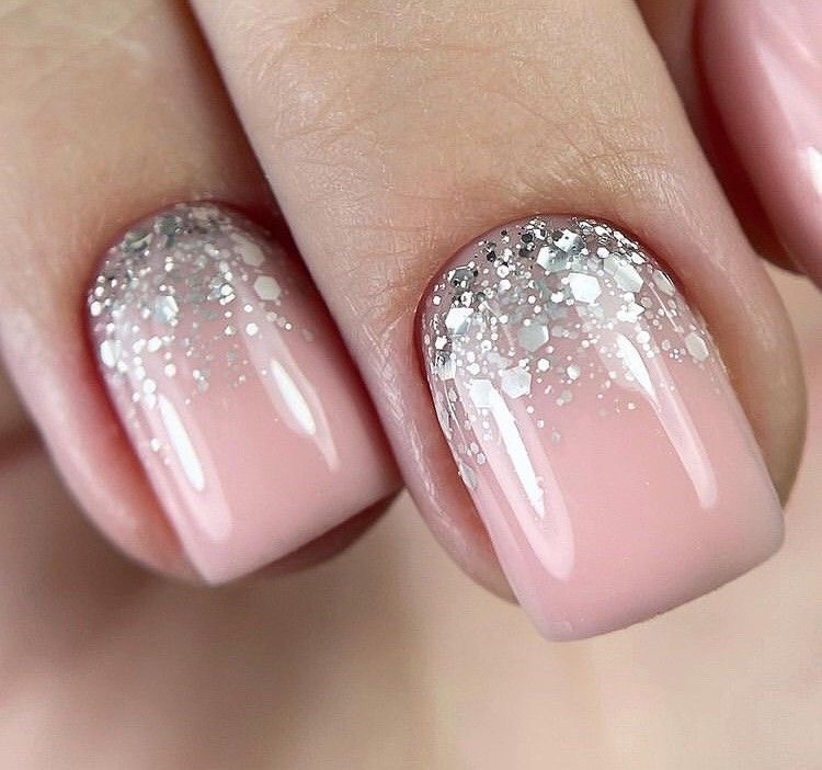 Градиент с блестками: звездная пыль на ваших руках. Этот дизайн визуально удлиняет ногтевую пластину и придает образу шарм.