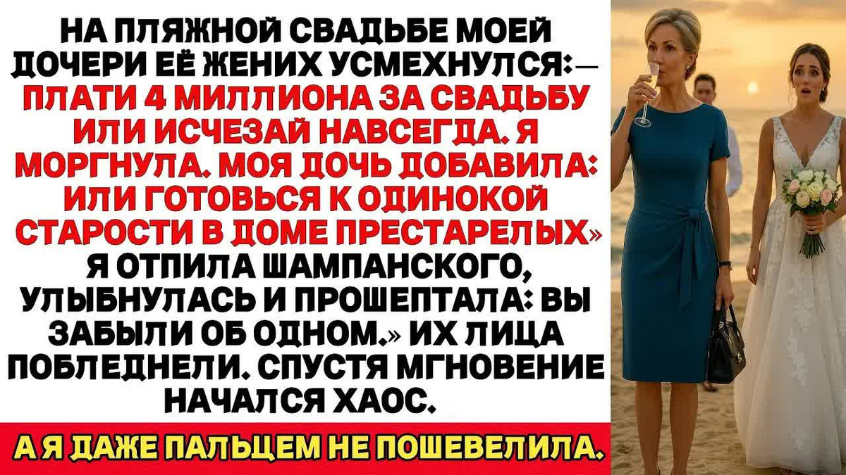 — Вероника говорила, что вы сможете покрыть часть расходов. Осталась последняя сумма, закрыть смету по банкету и декору. Четыре миллиона рублей. Думаю, для женщины, которая все эти годы вкладывалась только в дочь и ни на что больше не тратилась, это не станет проблемой.