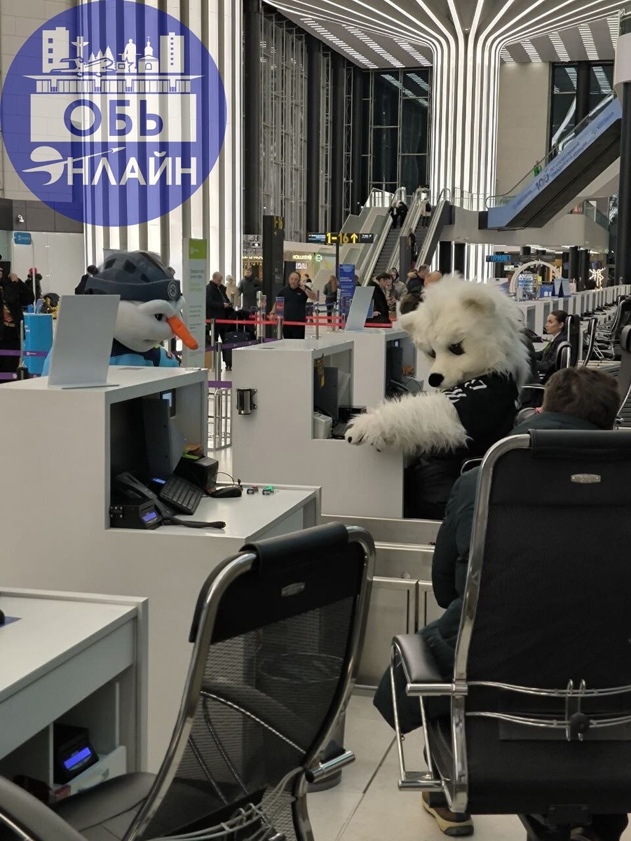 ↗ Снеговик и Белый медведь, зажигают в аэропорту Толмачёво😃