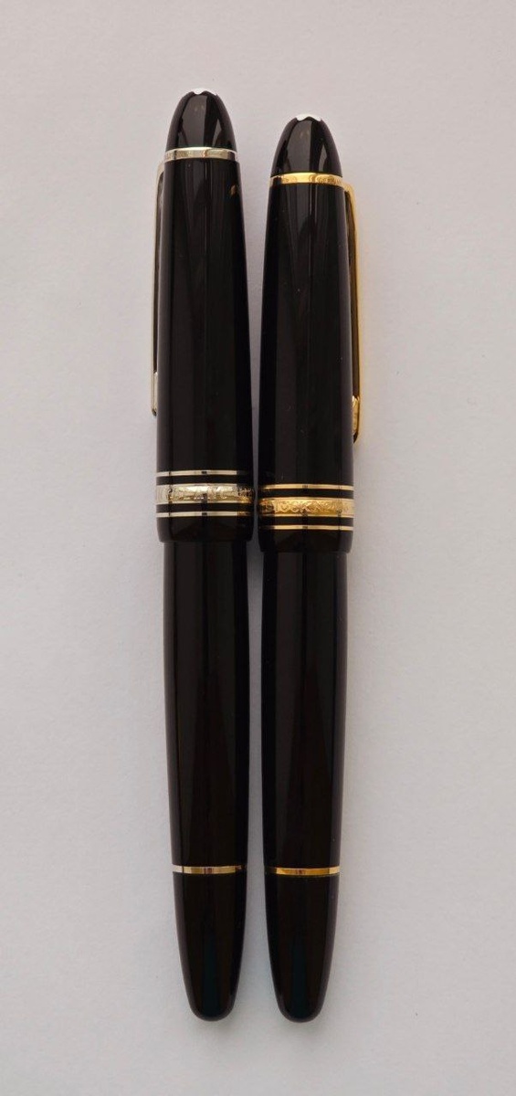 Продолжаем сравнивать ручки Montblanc моделей 146 и LeGrand. Про металлические версии Solitaire заметка уже была, теперь пришла очередь посмотреть на классические моделеи из "драгоценной смолы") На представленных фотографиях Montblanc LeGrand слева в отделке из белого металла, а 146 справа в отделке из позолоченного металла.