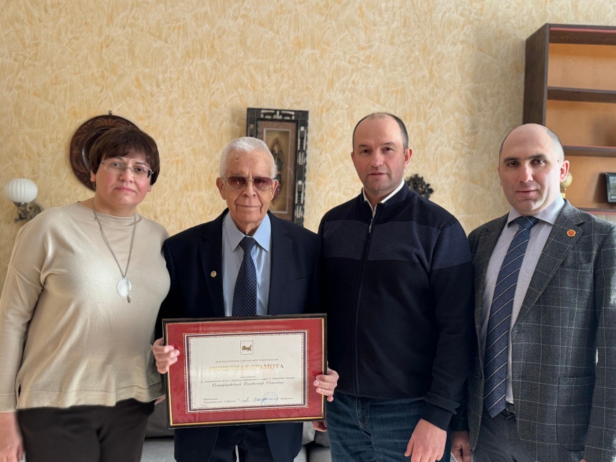 Доктор исторических наук, профессор Владимир Олтаржевский награжден грамотой Законодательного собрания Иркутской области