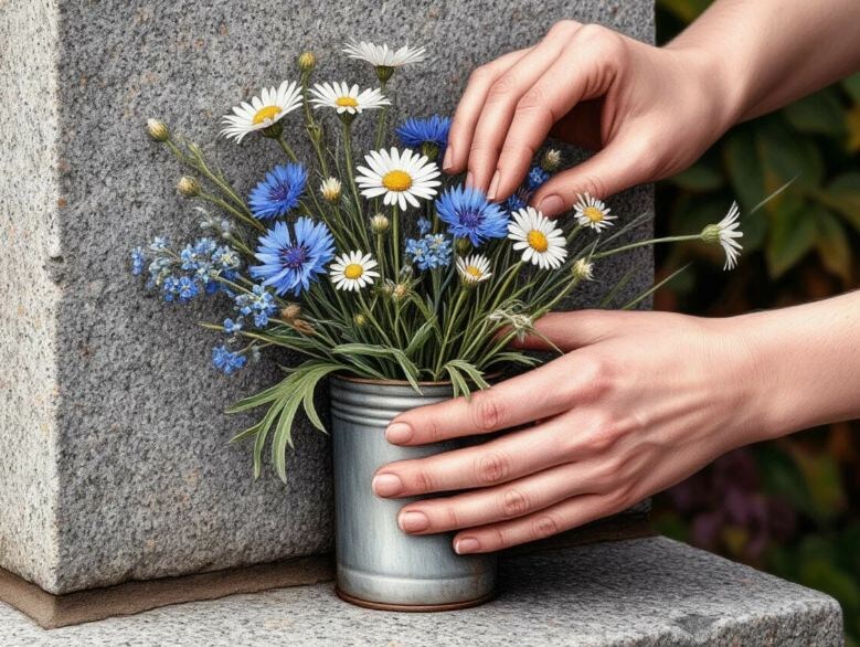 Она поправила цветы в жестяной банке, дотронулась до холодного камня – пальцы запомнили шероховатость гранита, как когда-то запоминали щетину на отцовской щеке.