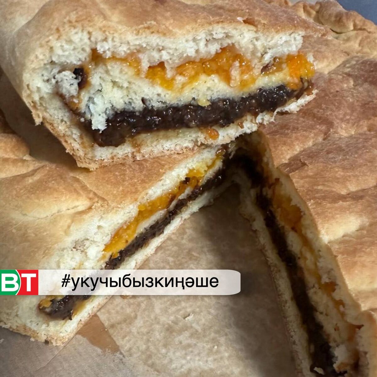 👇🏻 ✅ Кирәк булачак: 100гр су 180гр атланмай 1шт йомырка 7гр чүпрә 1аш кашы шикәр комы Әәәәәз генә тоз (чәй кашыгының яртысы) 400гр он (кулга берекми торган итеп баскачканы салыгыз) 🔥 Камыр ясыйбыз: Суда чүпрәне болгатып күпертәбез, йомшак атланмайны шунда салып, йомырка, тоз, шикәр комы өстәп яхшылап болгатабыз. Аннан соң онны салып кулга берекми торган камыр басабыз. Бер сәгатькә кабартырга куябыз. 🤤 Эчлекне ясыйбыз: 200шәр гр үзегез яраткан җимешне (бу очракта күрәгә, кара җимеш) юып иттарткычтан чыгарып, 2 аш кашыгы шикәр комы (баллырак яратсагыз күбрәк салсагыз да була), 100-150 гр су салып, куерганчы кабартабыз. Камырны өчкә бүлеп - берсе олырак булырга тиеш, катлап җимешләрне салып пирог ясыйбыз. 180С° мичтә, 40-45 минут пешерәбез. Тәмле булсын! ☺️