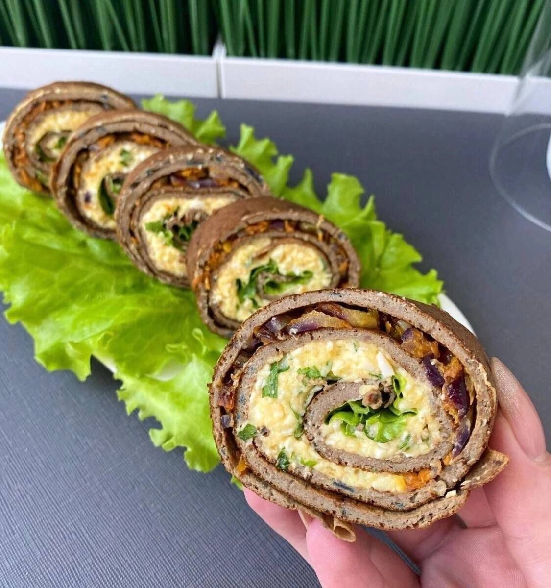 ✅КБЖУ 125/15/5,9/3,4 ▫️куриная печень 500 гр ▫️1 яйцо ▫️лук ▫️специи по вкусу ▫️мука ( у меня рисовая) 1- 2 ст л ДЛЯ НАЧИНКИ: ▫️лук ▫️морковь ▫️1 яйцо ▫️сыр и зелень по вкусу ▫️сметана 1 ст л ▫️В блендер отправляем печень, лук и специи ▫️Добавляем 1-2 ст л муки, смотрим на консистенцию (должно получиться жидкое тесто) ▫️Жарим блинчики с 2х сторон по 1,5 минуты Для первой начинки: ▫️Обжариваем лук и морковь Для второй: ▫️Верим яйца, трём на терке ▫️Добавляем сыр, зелень и ложку Сметаны ▫️Перемешиваем ▫️Блинчики выкладываем внахлест, выкладываем начинку, заворачиваем в рулет, разрезаем порционно🤗