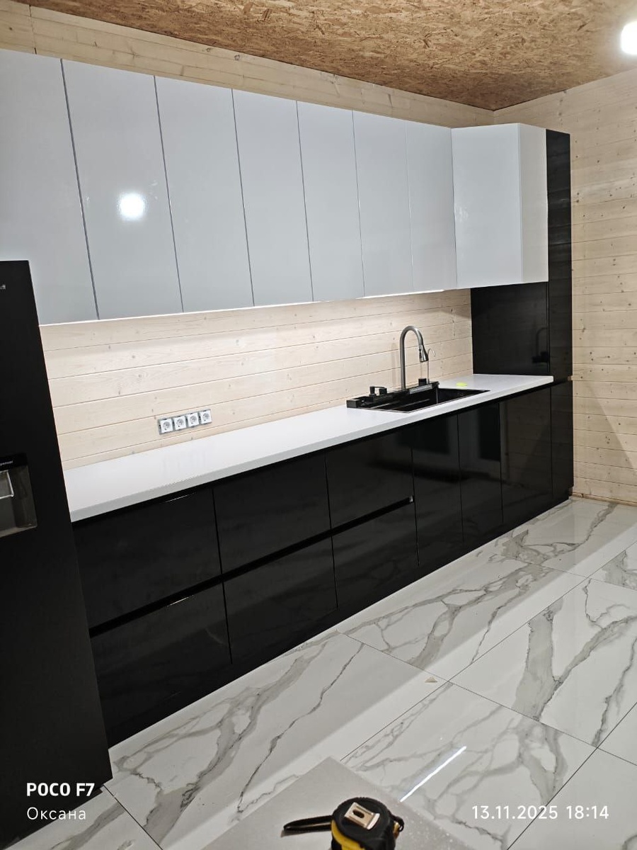 ! 🌟 Сегодня показываем проект для тех, кто не боится выделяться. Чёрная кухня — это всегда заявление. Это не просто цвет, а характер, который преображает пространство. Что важно знать о чёрной кухне: · Акцент и драма. Она становится центром интерьера, создавая сильный контраст и ощущение глубины. · Идеальный фон. На чёрном фоне ярче смотрится посуда, текстиль. · Визуальный порядок. Цвет дисциплинирует: он «собирает» пространство, делая его строгим и лаконичным. Наш проект: ▫️ Форма: прямая с островом — функциональность и удобство. ▫️ Стиль: минимализм — ничего лишнего, только чистые линии. ▫️ Фасад: ПВХ — практично, за чёрным глянцем легко ухаживать. Чтобы чёрная кухня не давила, важно: 1. Хорошее освещение — точечные светильники и подсветка рабочих зон. 2. Светлые стены и пол — создают необходимый баланс. Такой интерьер выбирают уверенные в своём вкусе люди. Это выбор не на один сезон, а на долгие годы. А вы готовы на чёрную кухню? Делитесь мнением в комментариях!