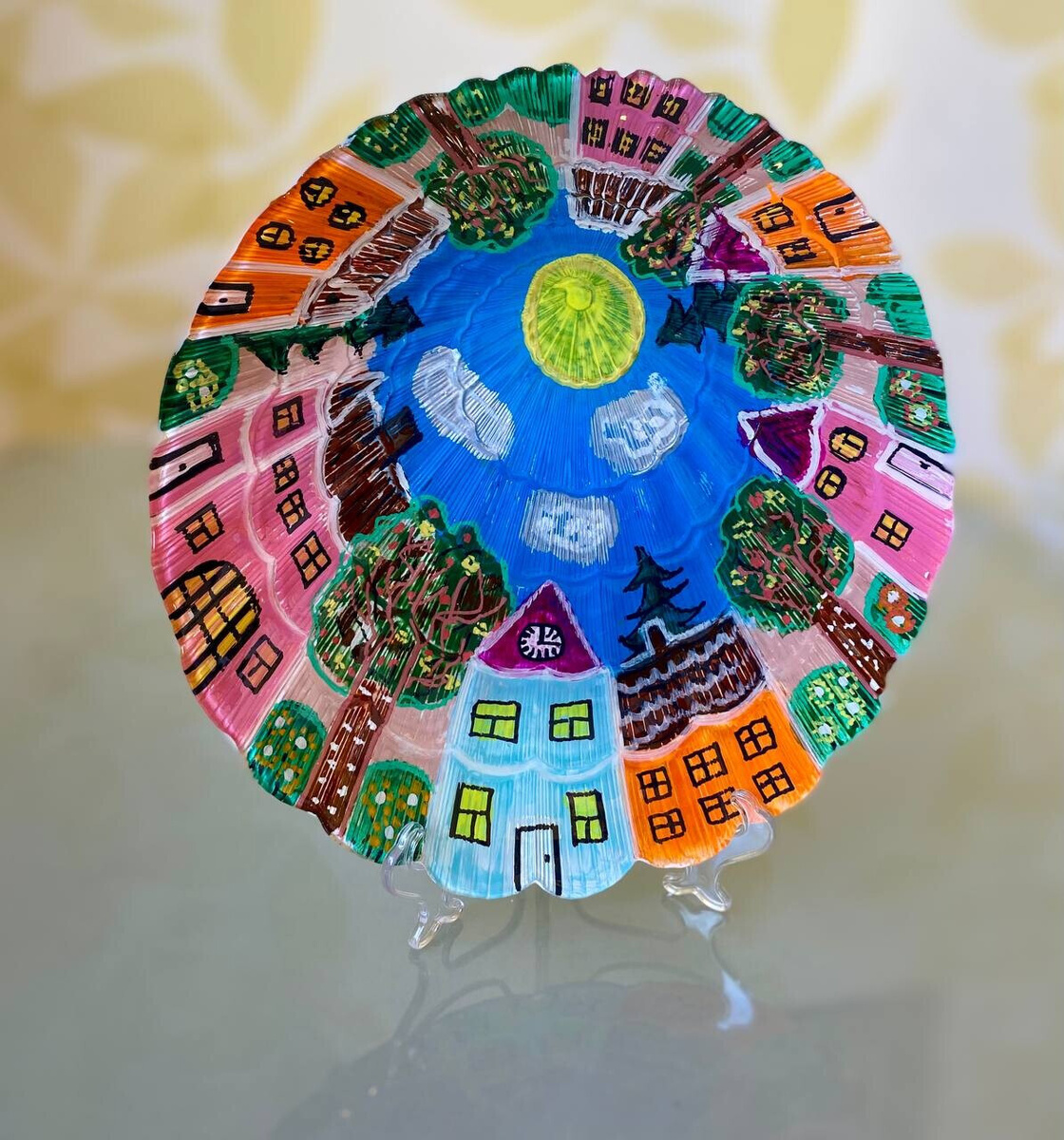 Иногда самое сложное — отпустить. Особенно то, во что вложена частичка души. Но когда твое творение находит свой дом и своего человека, на смену легкой грусти приходит чистая, светлая радость. Именно так я чувствую сегодня: моя тарелочка «Ах, как хочется вернуть… Ночь» отправилась в Санкт-Петербург! 🌃 Эта стеклянная красавица с ручной росписью — больше, чем просто посуда. Это маленькая история, застывшая под слоем прочного лака. История, которую можно поставить как декор или использовать как изящную сервировочную тарелку. Почему она особенная? 🎨 Роспись с обратной стороны. Все магические детали нанесены на обратную сторону стекла. Это значит, что с лицевой стороны тарелка идеально гладкая, а краски защищены от контакта с пищей и влагой. Безопасно, практично и долговечно! 🏙️ Мир наивного искусства. Я рисовала этот ночной городок так, как видела его в детских снах: немного игрушечный, очень уютный, залитый светом полной луны и мерцающих огней в окнах. Он не претендует на реализм, он п
