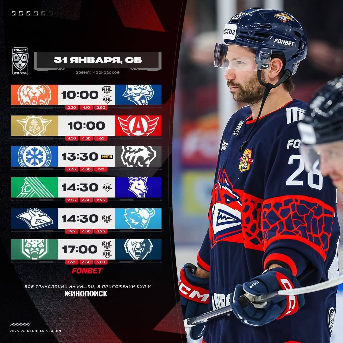 » постараются продлить свои победные серии, минское «Динамо» ожидает непростая встреча с лидирующим на Востоке «Металлургом» в Магнитогорске, последнее в гладком чемпионате дерби Татарстана между «Ак Барсом» и «Нефтехимиком» примет Казань.