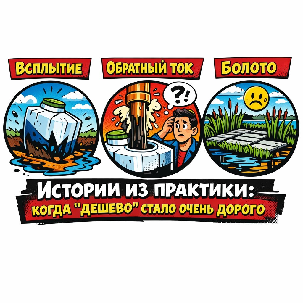 · Счет за «экономию»: Срочный вызов нашей аварийной бригады. Демонтаж, откачка, утилизация. Установка бетонной плиты, якорение, новый монтаж того же септика. Переплата: 67 000 рублей. И испорченный газон.