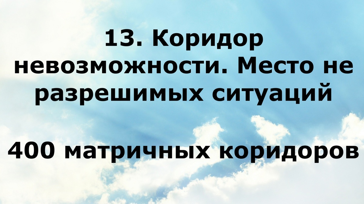 13. КОРИДОР НЕВОЗМОЖНОСТИ. МЕСТО НЕ РАЗРЕШИМЫХ СИТУАЦИЙ