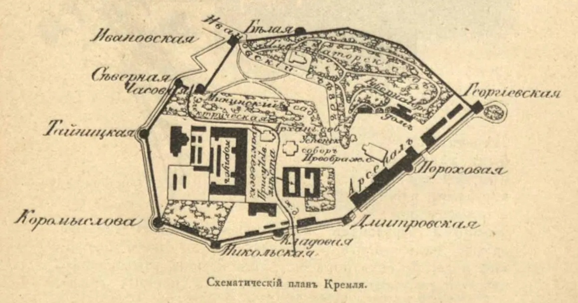 До постройки Кремля Нижний был укреплён рвами и валами, с тыном в два ряда, которые образовывали Большой и Малый острог. В Малом остроге, почти совпадавшем с нынешними кремлёвскими стенами, было две башни: Дмитровская и Тверская (ныне Ивановская). Острог, вероятно, был построен при основании Нижнего, так как в старину городом называлось укреплённое место. Острог считался укреплением второстепенной важности и ставился на окраинах среди народов, мало искусных в военном деле. Татарское нашествие выдвигает необходимость усилить укрепление Нижнего постройкою Кремля. Первая попытка к его построению относится к 1359 году, когда князь Борис Константинович «повелел ров копать, где быть каменной городовой стене и башням». Междуусобия его с братом помешали осуществить его мысль; но его брат, великий князь Дмитрий, продолжил его дело и в 1374 году сооружает башню, названную по его имени Дмитровской, и часть стены. Татарское иго отодвинуло постройку на сто лет. Тогда великий князь Иоанн III твёрдо