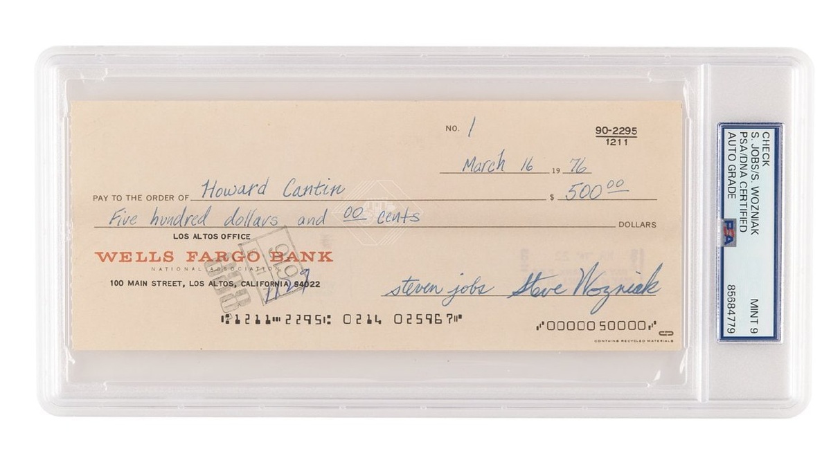 Аукционный дом RR Auction завершил торги коллекцией личных вещей Стива Джобса и раритетов компании Apple, приуроченные к пятидесятилетию корпорации. Общая сумма продаж составила 8,153 миллиона долларов. Главным лотом стал чек, подписанный Джобсом и Возняком в июле 1976 года — самый ранний из известных платежных документов, выписанных с оригинального банковского счета Apple. За него выложили 2,409 миллиона долларов, что сделало бумажку самым дорогим финансовым артефактом в истории компании. Исполнительный вице-президент аукционного дома Бобби Ливингстон назвал чек «важнейшим финансовым документом в истории Apple», отражающим первую настоящую деловую транзакцию основателей. Впрочем, коллекционеры готовы были раскошелиться не только на бумаги. Прототип компьютера Apple-1 под названием Celebration Board ушел за 2,75 миллиона долларов, банковская выписка Wells Fargo за март 1976 года — за 828 тысяч, а постер Apple Computer Inc. 1977 года из личной коллекции Джобса — за 660 тысяч. Среди бо