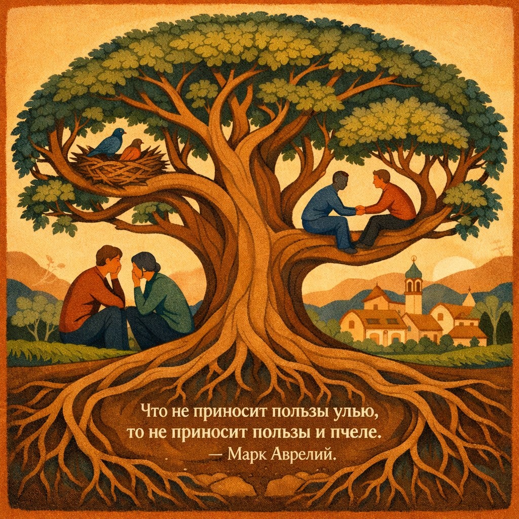 Когда мы слышим слово «дисциплина», мы часто представляем себе одинокого аскета, подчиняющего свою волю, или сурового начальника, требующего порядка. Стоицизм же, особенно в изложении Райана Холидея в «Дисциплине — это судьба», предлагает куда более глубокий и человечный взгляд. Это не философия холодного отрешения. Это философия ответственного включения в мир. Внутренний порядок, о котором мы говорили ранее, — не конечная цель, а фундамент для построения правильных, прочных и справедливых отношений с другими. Истинная дисциплина проверяется не в пещере отшельника, а в шумной семье, в рабочем коллективе, в обществе.