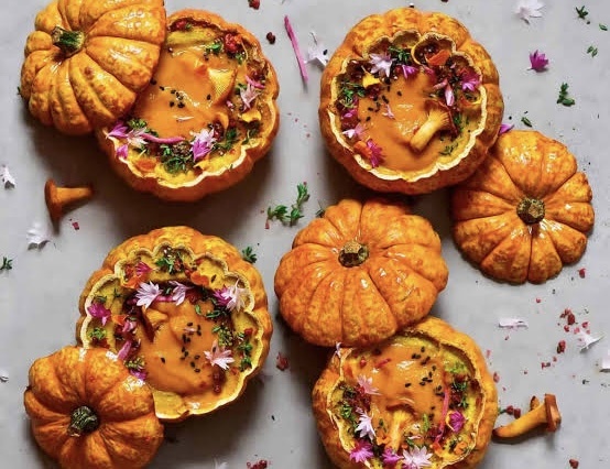 Рецепт-основа: Крем-суп из тыквы с имбирём и кокосом, запечённый в себе