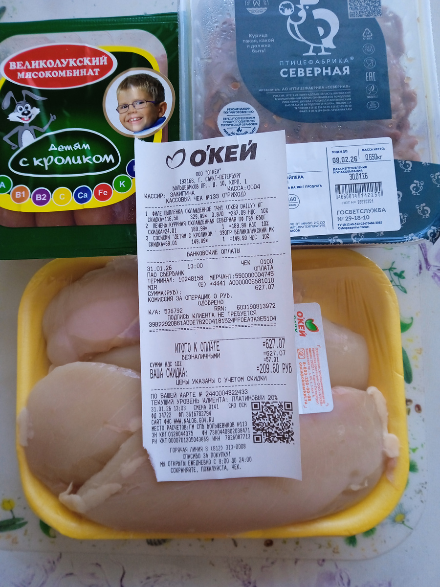 Все продукты купила в «О'КЕЙ». Заходила в два «Магнита», в два «Дикси» и универсам «Верный» — нигде куриной печенки не было. На пути домой зашла ещё в «Пятерочку» и тоже куриной печенки не увидела. Куда, интересно, она делась?