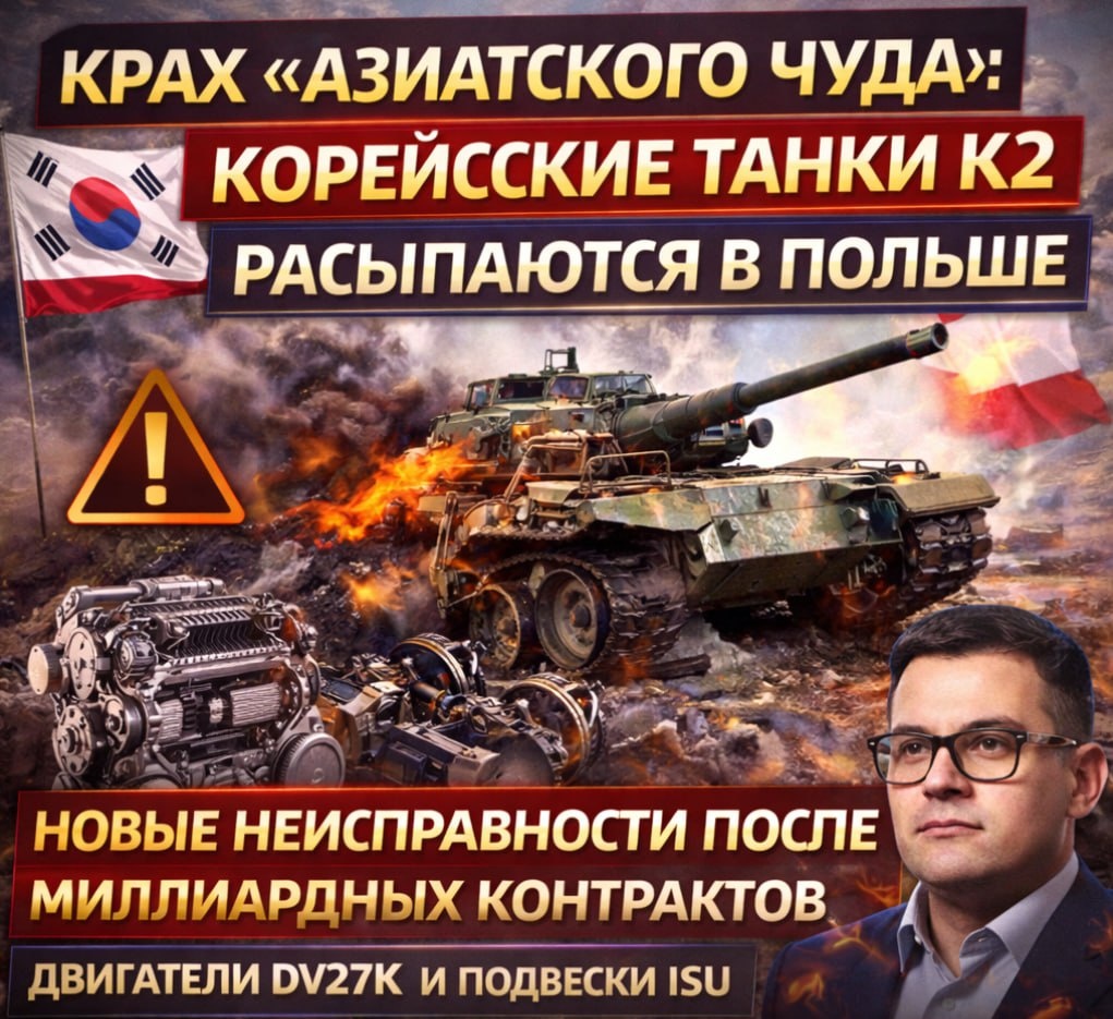 " Так описывает ситуацию с танками К2 польский военный эксперт Я.Вольский, после многочисленных жалоб танкистов. Как говорит "пшек" южнокорейские танки K2GF, закупленные в рамках миллиардных контрактов, демонстрируют массовые технические отказы уже в первый год эксплуатации, подтвердив, что танки страдают от критических неисправностей двигателей DV27K и подвески ISU. Факты отказов: массовый перегрев, утечка технических жидкостей, задиры и заклинивание двигателя, критические проблемы с подвеской, отсутствие учебных машин и тренажёров: танки «сжигаются» неопытными экипажами на реальных полигонах. — По словам Вольского, ВС Польши фактически стали полигоном для обкатки сырой корейской техники: «Мы выступаем в роли подопытного кролика», — заявил он. Аналитик напомнил, что уже на этапе закупок было известно о проблемах с силовой установкой и трансмиссией, но несмотря на это, Варшава заключила два контракта: 180 K2GF (Gap Filler) — уже поставлены в Польшу в 2025 году, 180 K2PL, новый контрак