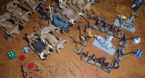 В то же время пока конные банды зелёного народа пытались взломать оборону имперцев, стрелковые отряды Икки «Моторолы» и Арчи «Плевка» продолжали вести дуэль с имперскими лучниками и довольно успешно. Помимо того, что они постоянно оказывали давление на пикинёрские каре, к тому же они оттягивали на себя всё внимания фланговых конных полков лучников.